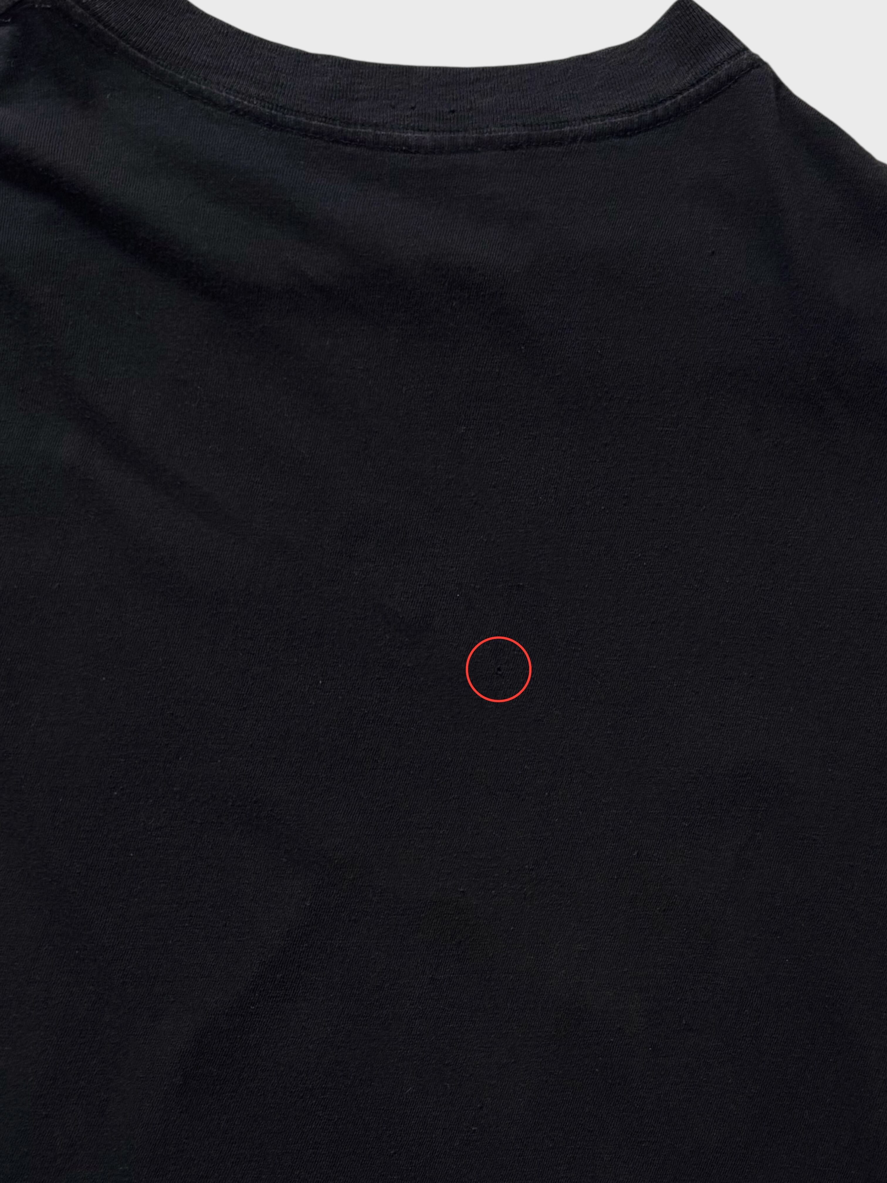 状態:全体的に着用感あり。ネック部分に極小ピンホール。左脇付近、背面に小さなピンホール。タグ欠損。
